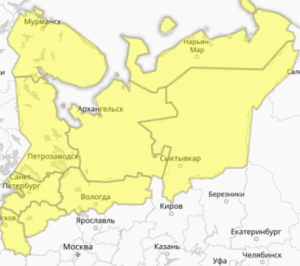 Карта на сайте Росгидрометцентра окрасилась желтый в границах Ленобласти и соседних регионов Северо-Запада России. Это означает, что погода несет потенциальную опасность.