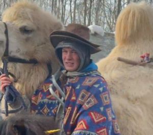 Ряженый латинос водил верблюда по заснеженному городу Тельмана