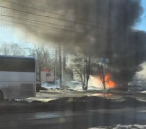 После лобового с "Тойотой" очевидцы вытаскивали водителя из полыхавшей "Газели" - видео