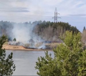 Тушить горящую траву с лодки - легко. Пожарные Ленобласти показали, как добирались до очередного пала - видео