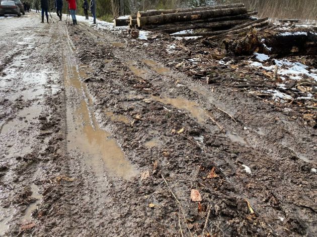 Также дорожники намерены оценить ущерб от стихийного склада на обочине. В полосе отвода дороги в несколько рядов сложена древесина, а грунтовое покрытие размыто колёсами большегрузов. В "Ленавтодоре" обратили внимание, что брёвна угрожают безопасности движения, также засыпаны водоотводные канавы. Кроме того, на асфальт грузовики вывозят грязь на колёсах.