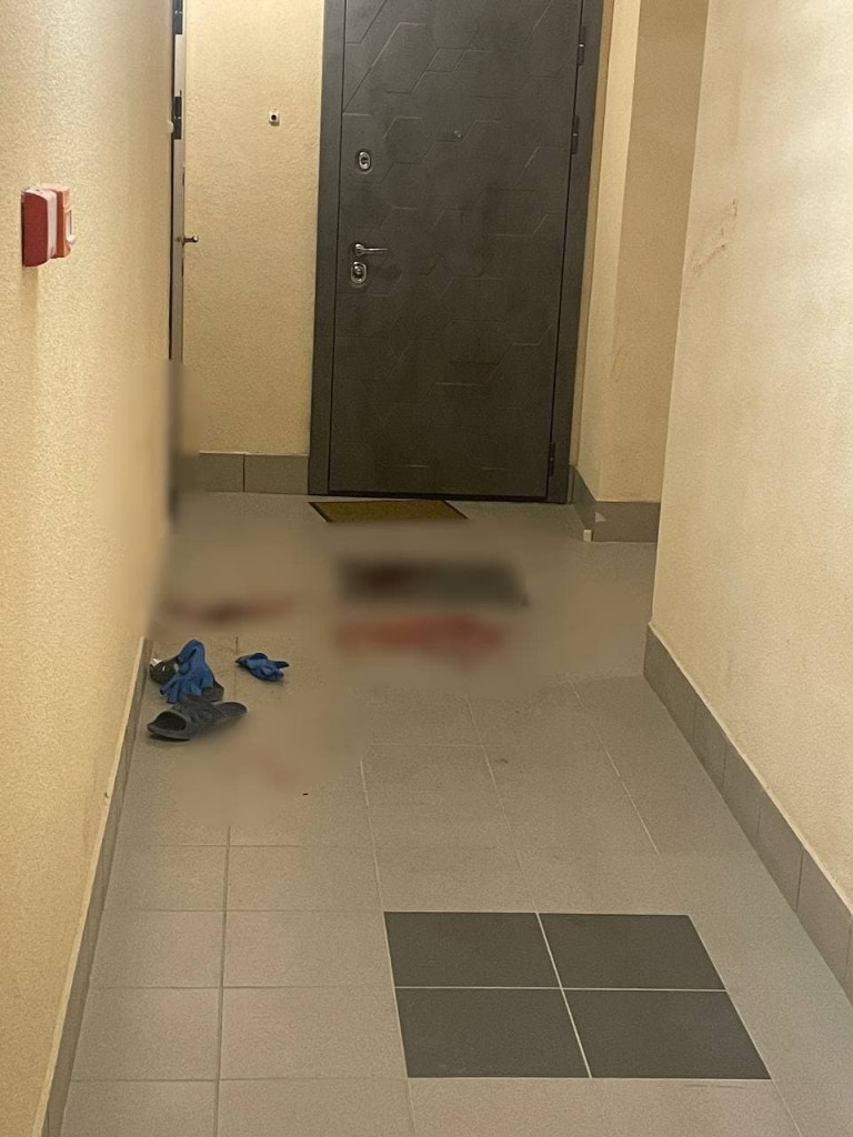 К полудню тело забрали. На месте, где его обнаружили, остались пятна крови, резиновые перчатки и тапочки.