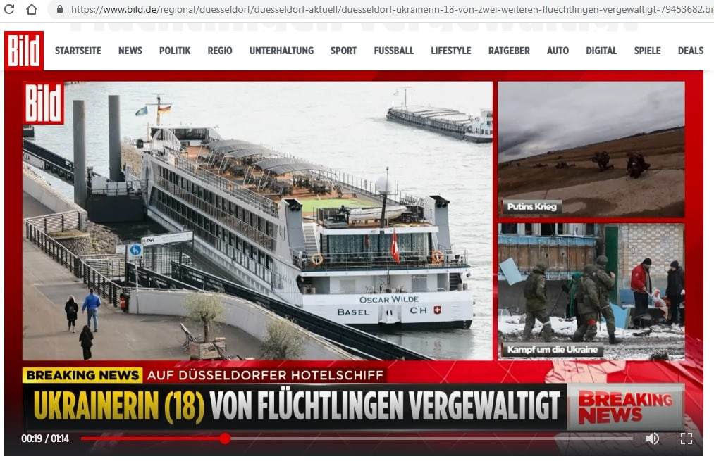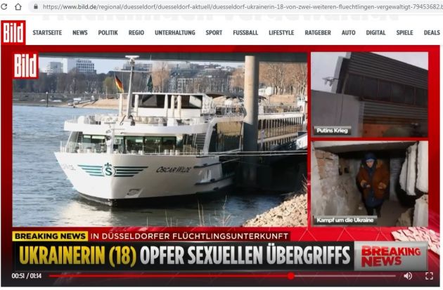 Так получилось, что громче остальных о себе заявил приют для беженцев, организованный на базе плавучего отеля "Оскар Уайльд" в Дюссельдорфе. Об изнасиловании на борту бывшего речного судна 18-летней украинки написало большинство немецких газет, включая крупнейшую Bild. В итоге задержали двоих — один из Ирака, второй из Нигерии, но у обоих с собой украинские паспорта.