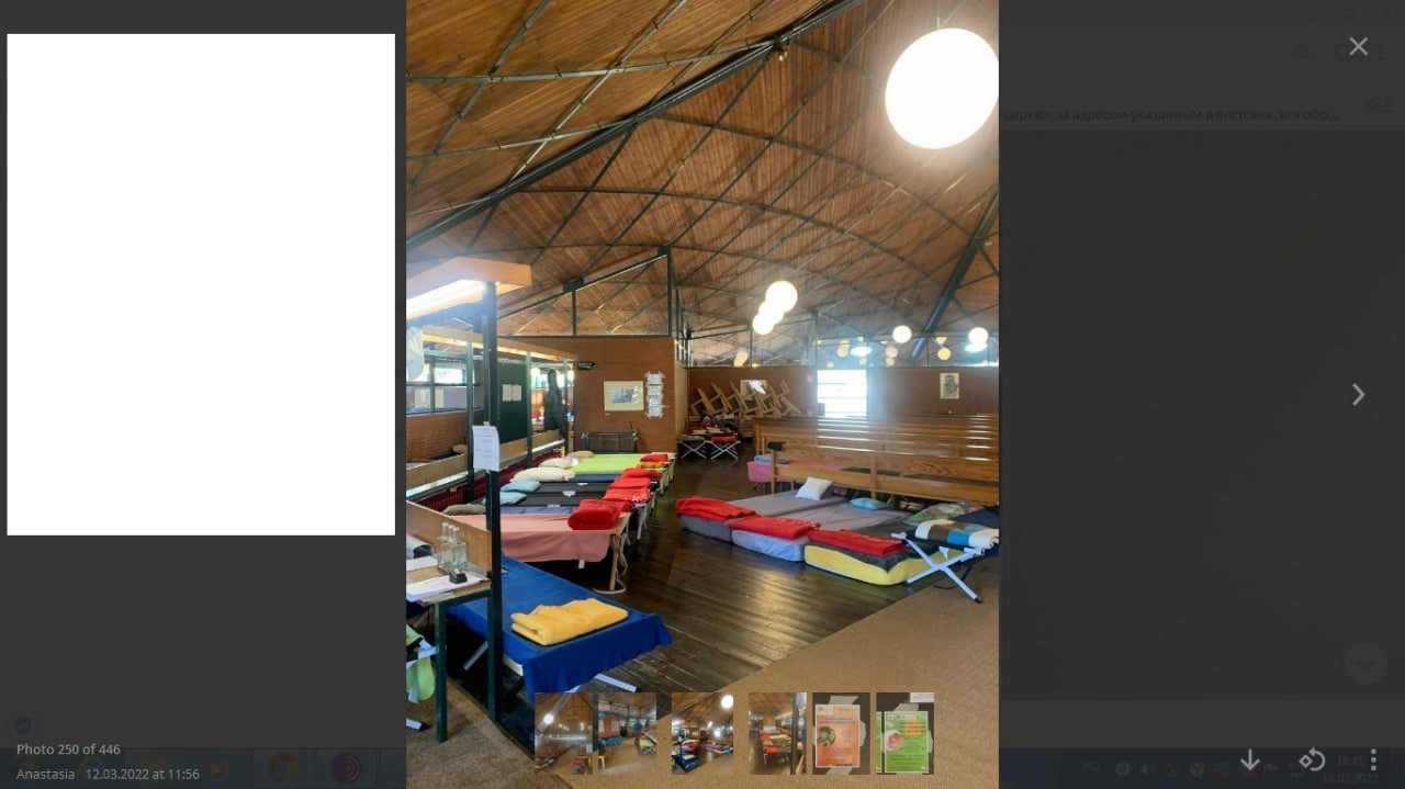 В том же Берлине кирха Евангелистов с Ораниенбургер штрассе приглашает к себе украинцев переночевать. Кровати установлены прямо за скамейками, на которых верующие внемлют слову пастыря.