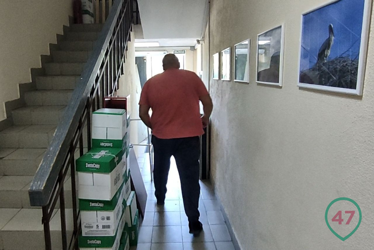 Проходим по кабинетам. По утверждению Шорникова, всего здесь около 40 сотрудников, и вроде как все они каждый день ходят на работу. В финансовом блоке молодые девушки и правда выглядят бодрыми. "Всё нормально у нас", - радостно говорит одна. Другая, чуть постарше, признаётся, что стало морально трудно именно входить в администрацию: "Много непонятных людей дежурит с той стороны забора. Полиция, конечно, есть, но она же не нас охраняет".