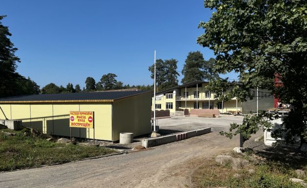 Видно, что возводится вытянутое здание, напоминающее барак. Уже появились каркас и основание крыши. В бывшей школе размещается офис двух компаний, как говорят, задействованных на стройке "Русхимальянса".