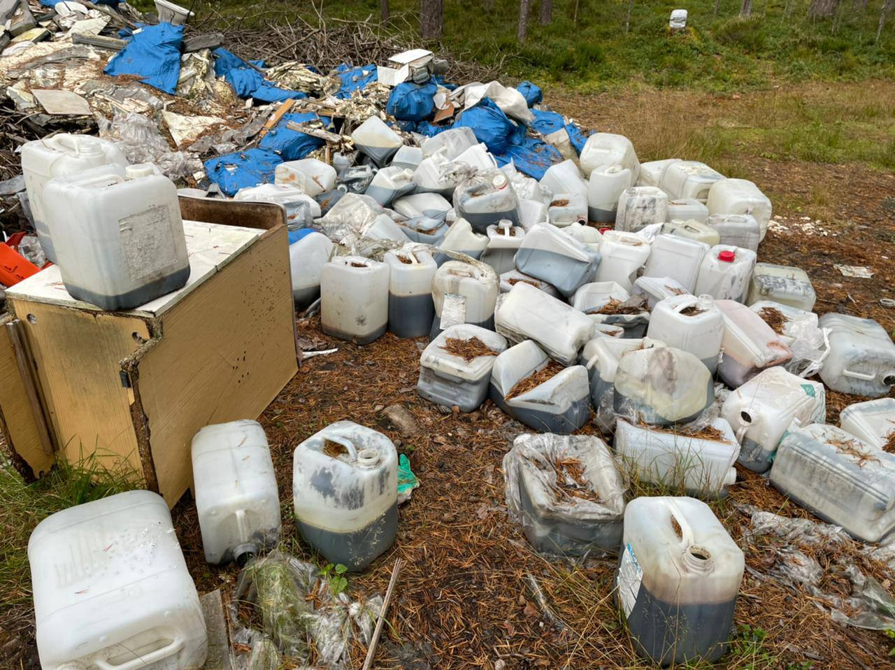 Как сообщает 4 октября пресс-служба Северо-Западного управления Росприроднадзора, несанкционированная свалка обнаружена в лесу рядом с поселком имени Морозова. Там экоинспектор обнаружил строительные отходы, десятки канистр с темной жидкостью с характерным химическим запахом и гнилые кости птиц.