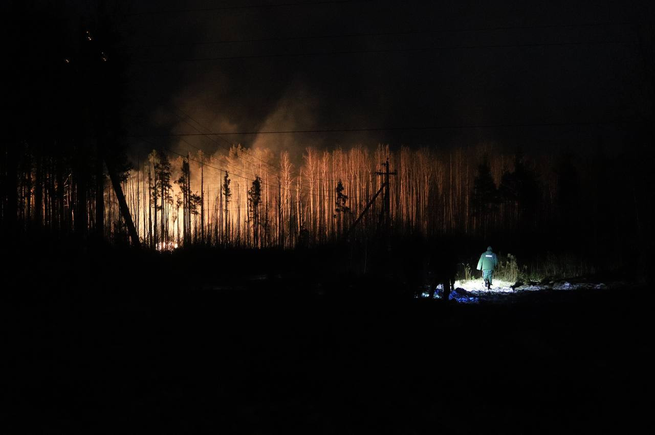 47news показал, как с огнем борется расчет пожарного поезда.