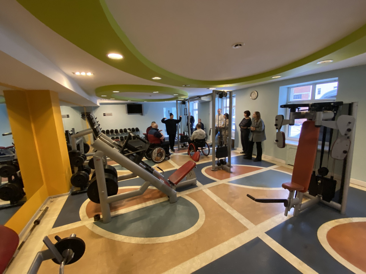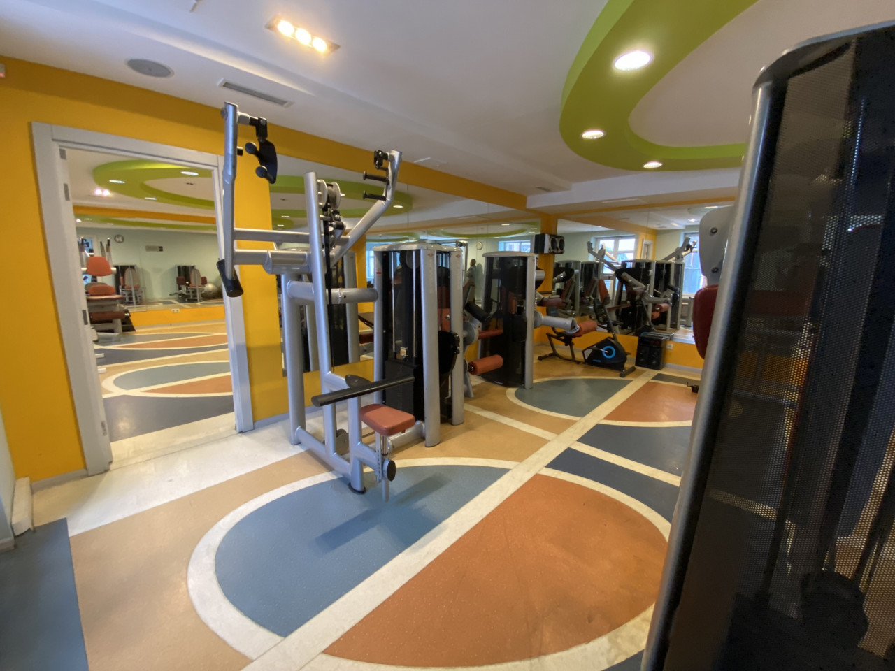 Вместе с бронью номера гостям выдают путевки в фитнес-центр. Беговые дорожки и тяжелое железо в двух залах. Заглянули и туда. Все тренажеры в доступе, а внимание Николая привлекла конструкция для прокачки пресса. Инструктор охотно рассказала, как это работает и задействованы ли при этом мышцы спины.