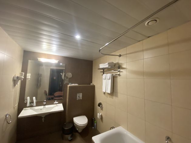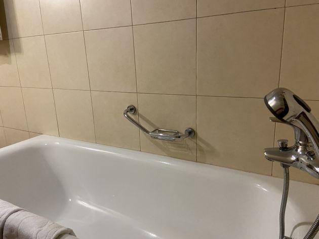 Из-за своих банных предпочтений Николай попросил номер этажом ниже. Говорят, тут уже останавливалась пара инвалидов, но ненадолго. К стене ванной прикручен поручень, но ободы колес предательски упираются в дверной косяк. Находчивый ревизор попросил пару стульев, чтобы соорудить подходящую конструкцию.