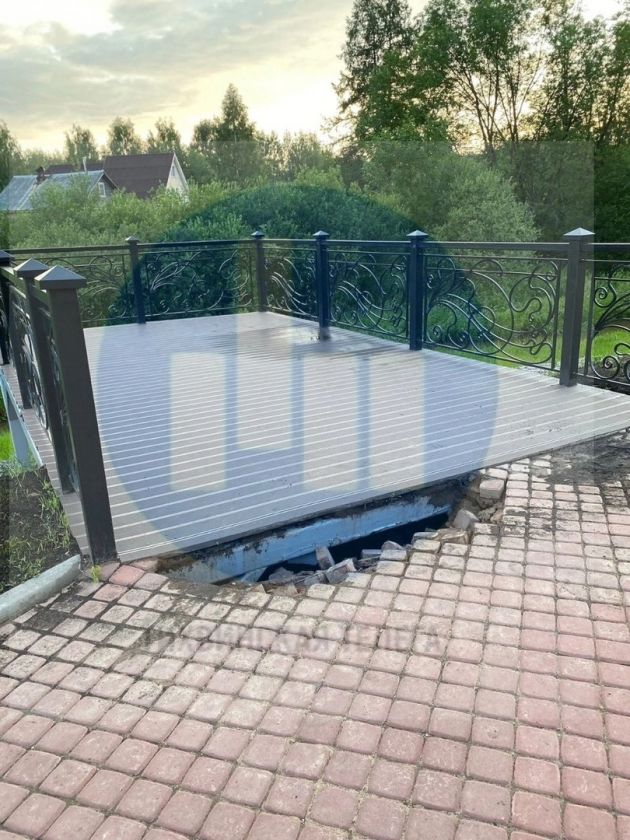 Судя по фото, выложенная на площадке плитка частично обвалилась, образовалось значительное углубление, которые сейчас устраняют. В районной администрации уточнили, что это произошло из-за просчетов: