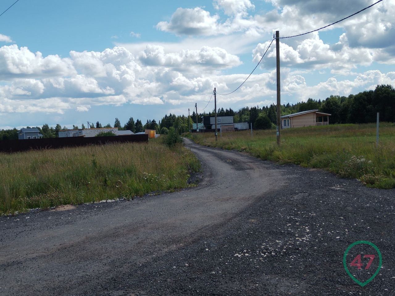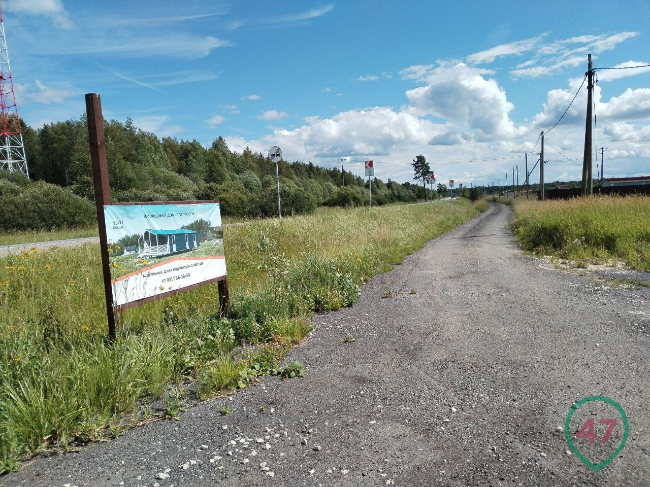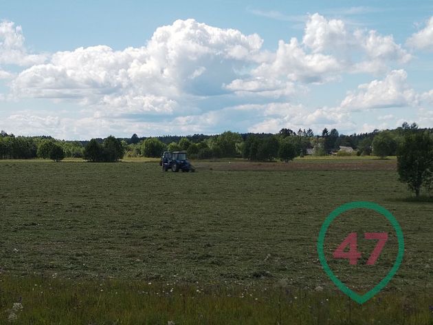 В Вырицком поселении - 27 поселков и деревень, площади огромные. Вдоль дороги тянутся поля, хотя и не особо размашистые. Это на взгляд горожанина - вроде с травой. Коров не видно, а местами поля разрывает свежая застройка дачными домами. Тут же и баннеры с рекламой: участки под СНТ, ИЖС.