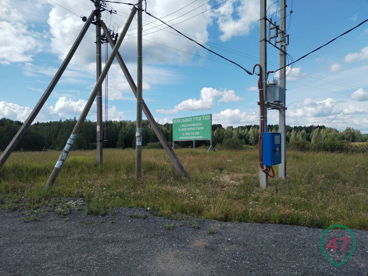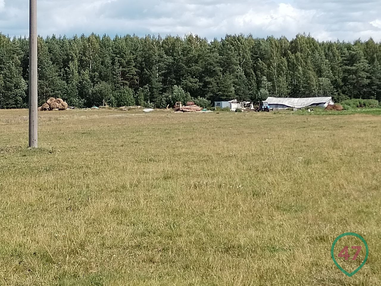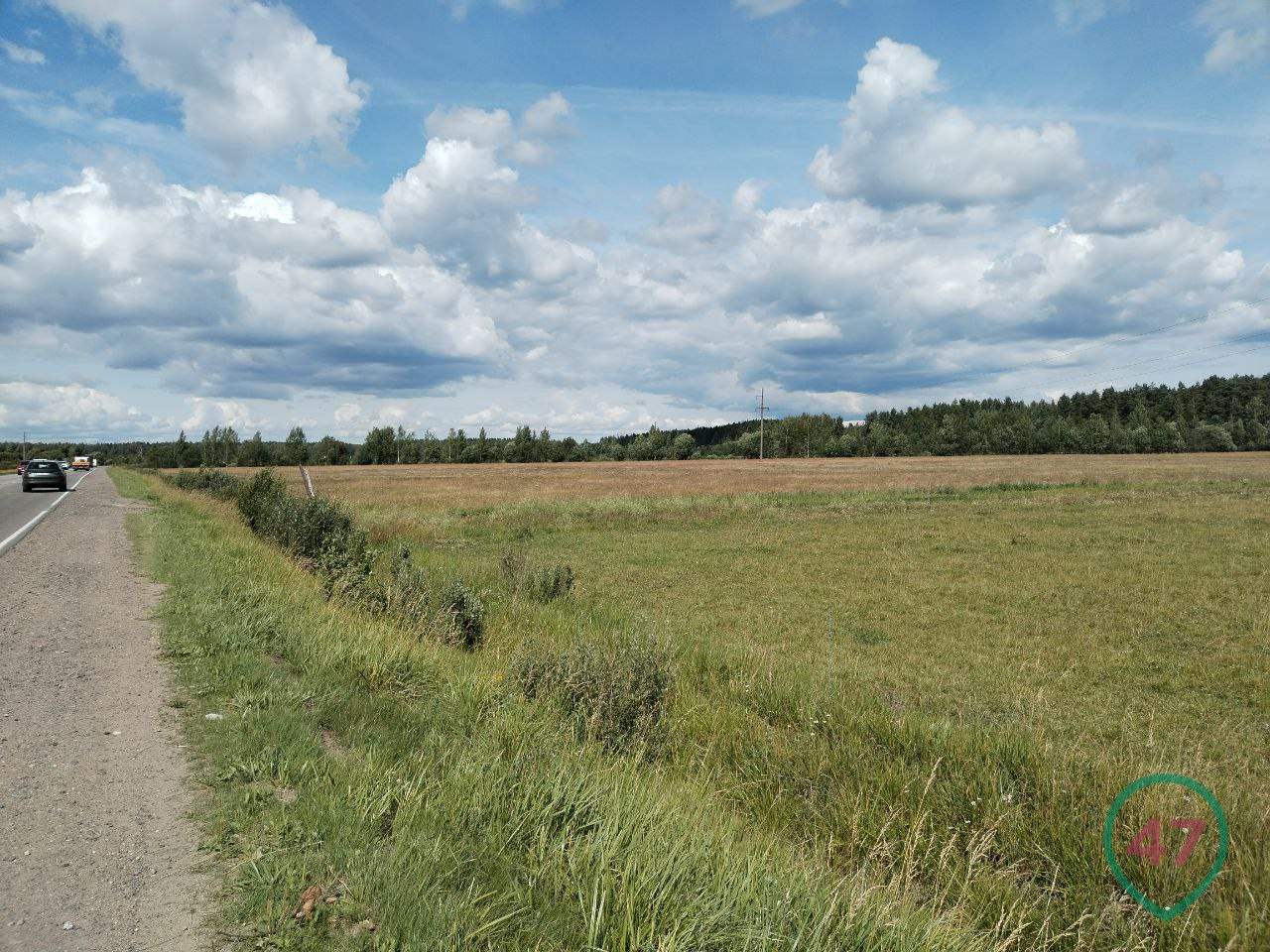В Вырицком поселении - 27 поселков и деревень, площади огромные. Вдоль дороги тянутся поля, хотя и не особо размашистые. Это на взгляд горожанина - вроде с травой. Коров не видно, а местами поля разрывает свежая застройка дачными домами. Тут же и баннеры с рекламой: участки под СНТ, ИЖС.