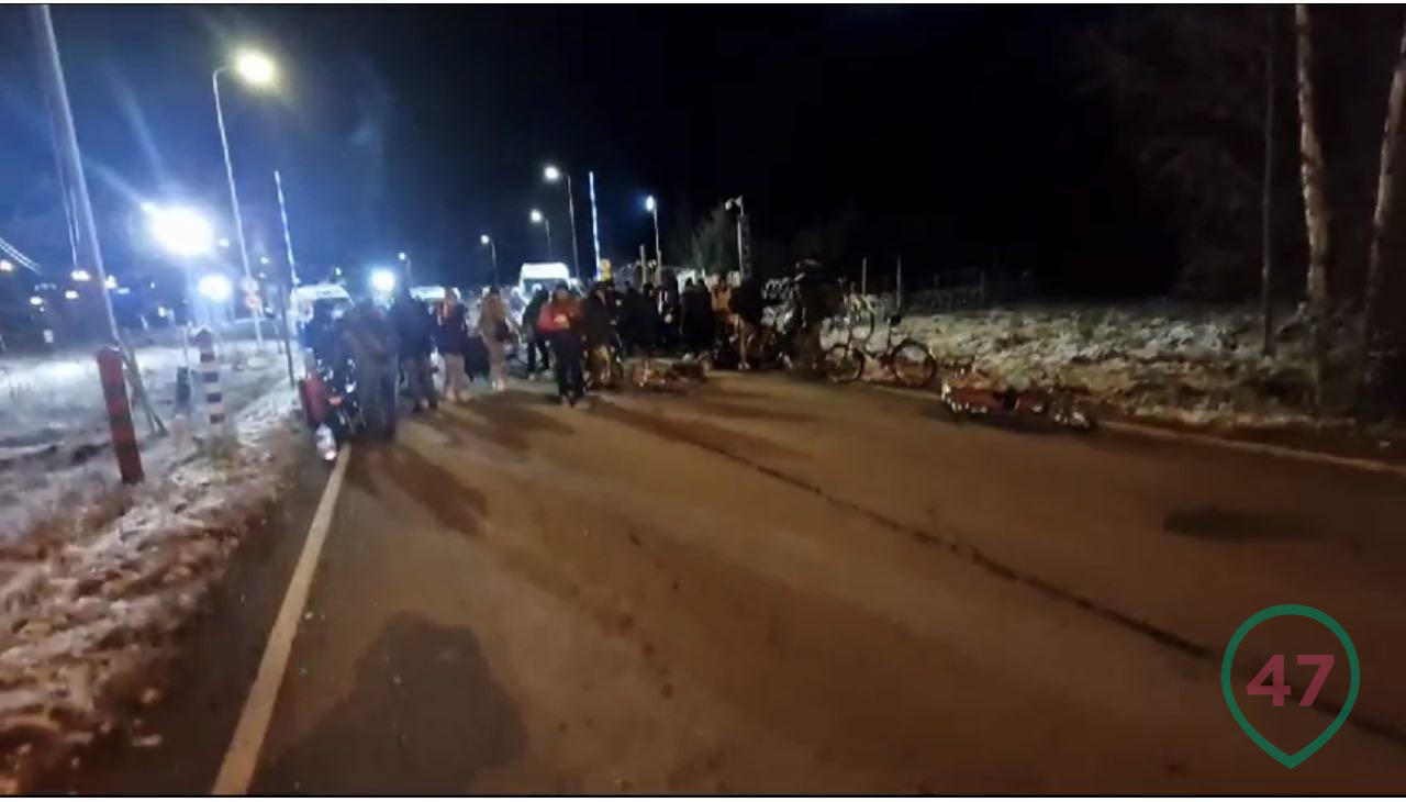 Ночью 18 ноября на погранпункте Торфяновка было многолюдно и громко - беженцы пытались докричаться до финских пограничников. Чуть ранее финны установили бетонные блоки и размотали колючую проволоку. С часа ночи пропуск был прекращен. За проволокой грейдеры и микроавтобусы - фары бьют в беженцев, видны силуэты финских пограничников в экипировке и шлемах. Желающие пожить в Европе замотаны во что попало и кричат-скандируют-орут на английском что-то вроде "пропускай", и звучит это не добро. Кто-то на заднем фоне жалобно говорит "help me". 47news раздобыл у участников "манифестации" видео.