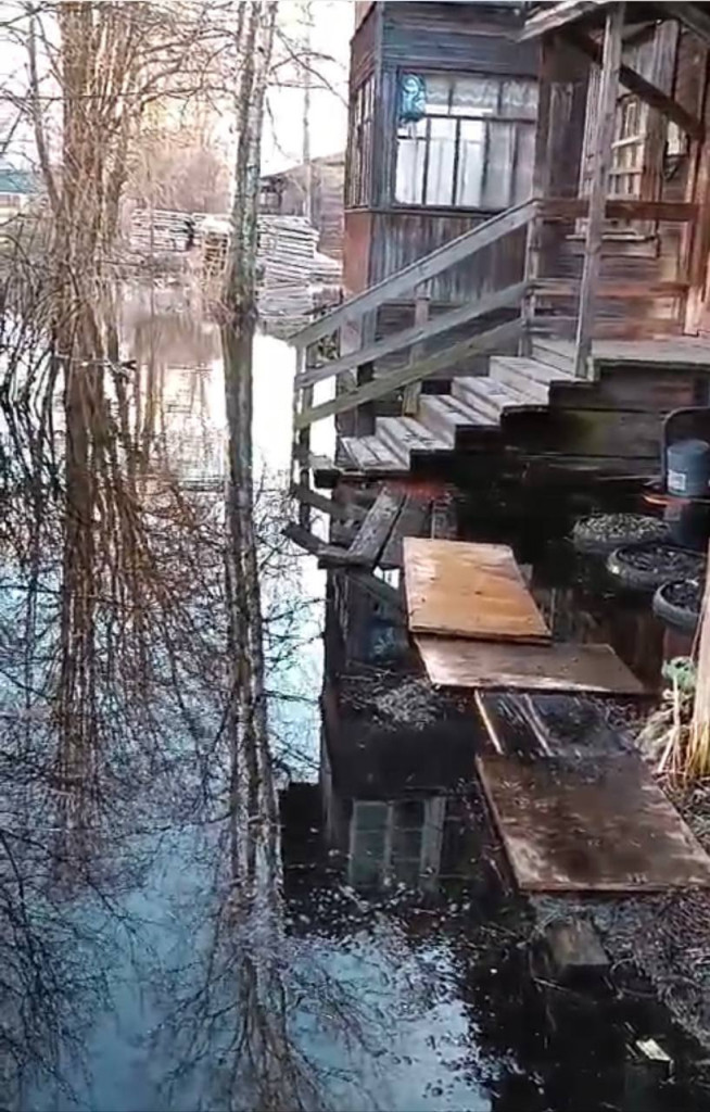 "Из канализации затопило тут все. Если чаинку в чай кинуть, видно не будет, вот вода такого же цвета. Зимой замерзало, по льду кое-как ходил. А сейчас подложили дощечки, так даже они уплыли", - рассказывает пенсионер.