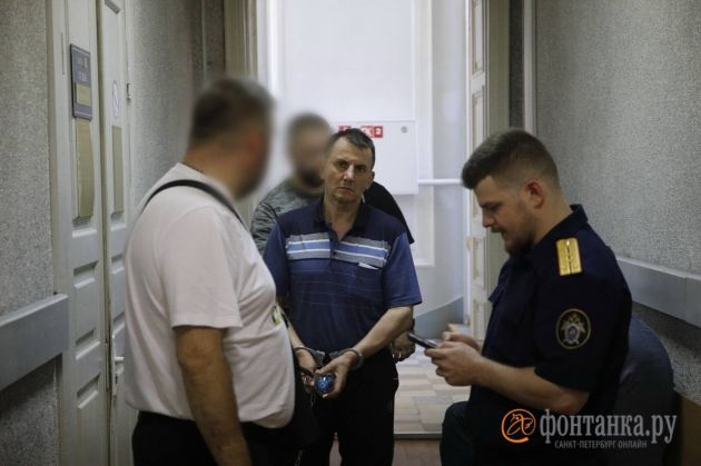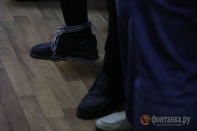 Смирнова привели к залу судебного заседания минут за 5 до начала. Невысокий, сухой, в футболке-поло, спортивных штанах, из кармана торчит кончик платка, руки и ноги в наручниках-кандалах. Сразу сел на скамью, попросил сопровождающих опуститься рядом. Тихо переговаривался с адвокатом.