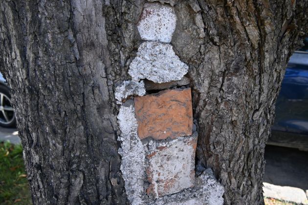Специалисты обследовали стволы и пришли к выводу, что они пустотелые, имеют дупла и поражены грибами, а значит, корневая система ослаблена. Это аварийные деревья, - возможны падения стволов, веток.