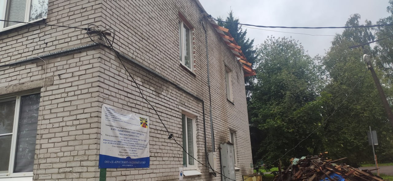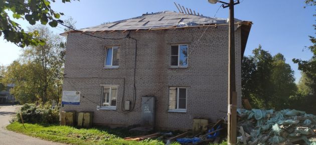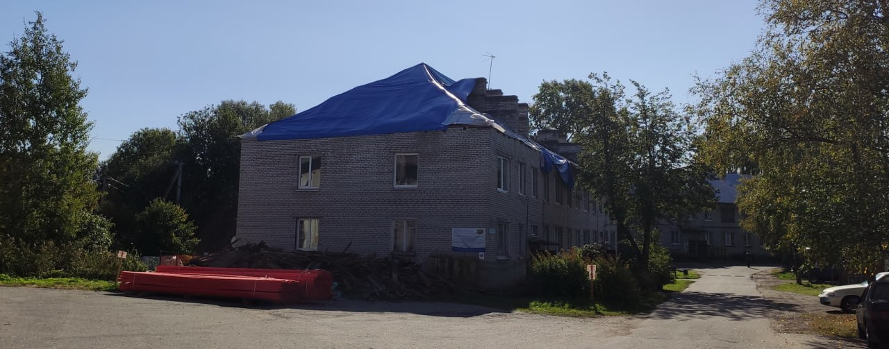 Ситуация выглядит таким образом, что с крыш демонтирован шифер, разобраны старые перекрытия-лаги. Новые балки установлены лишь частично. Монтаж и установка кровли не произведены. Собеседники 47news рассказывают, что им обещали металлочерепицу. По факту всё остановилось на том, что на крыше натянули защитную плёнку — рулонную мембрану. Она, по сути, единственная защита жильцов от осенних небесных невзгод.