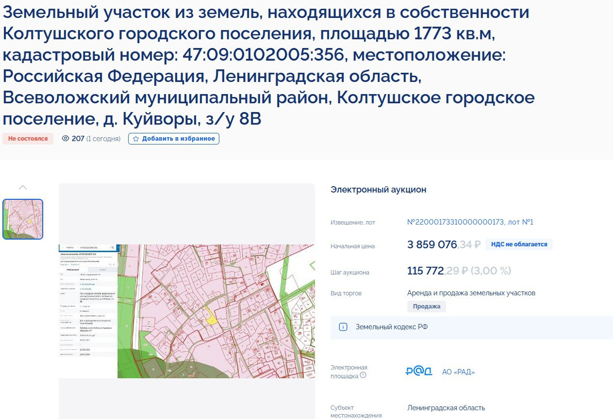 В правительстве Ленинградской области рассказали, что администрации отправляют заявки на торги не по своему усмотрению, а в случае, если какой-то надел захотел купить гражданин. Как правило, цена на такую землю может отличаться от рыночной в более выгодную сторону. Но это не означает, что обычный человек, нашедший такой участок на карте, легко приобретёт его. Бывает так, что после написания им заявления, появляется ещё один претендент. Из-за этого и объявляются торги, и информация становится известной более широкому кругу лиц. В случае, если данные о существовании земли известны только определённому кругу лиц, ни до какой конкуренции не доходит.