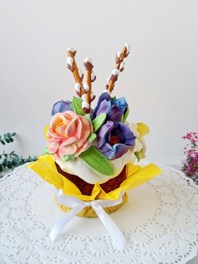 Предлагают и куличи с различными украшениями. Например, в Мурино можно заказать кулич в виде старого лесного пня с ягодами малины и голубики сверху. Или с весенними крокусами, нарциссами и веточкой вербы. Все это сделано из зефира. Такие куличи обойдутся в 1000-1400 рублей за штуку, в зависимости от веса и оформления.