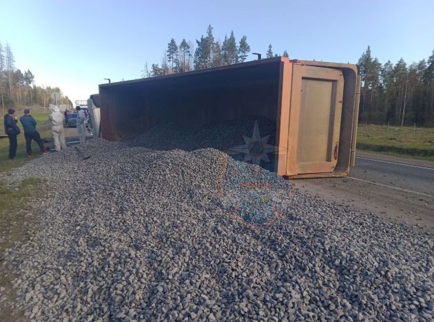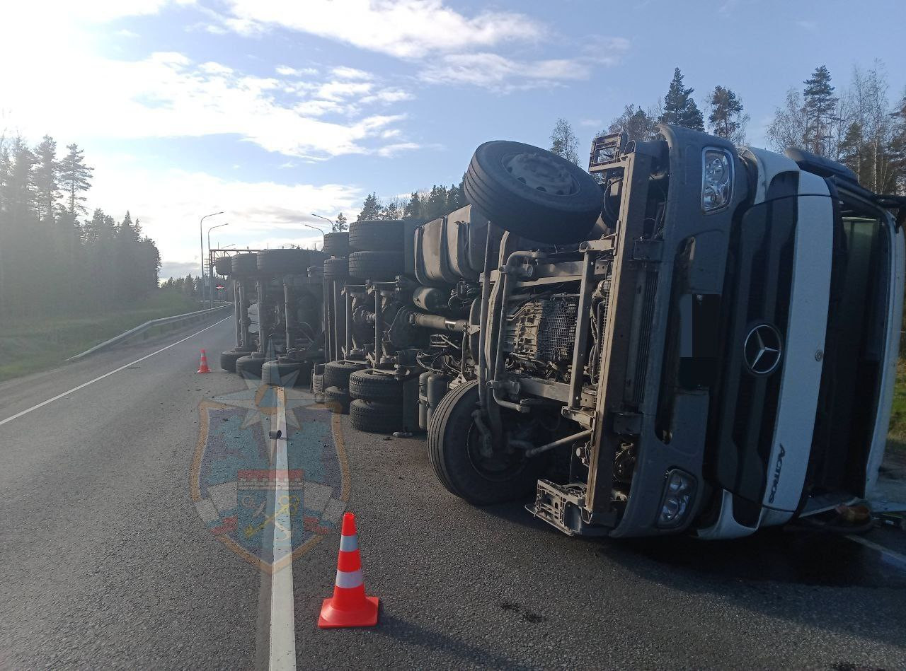 Как сообщили в региональной Аварийно-спасательной службе, около шести часов вечера 15 мая поступила информация о ДТП на 133-м километре трассы А-121 "Сортавала". Водитель грузового автомобиля не справился с управлением, машина опрокинулась.