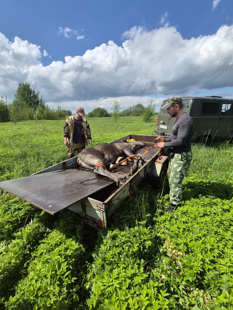 В спасательной операции участвовали сотрудники охотхозяйства "Динамо". Они, в частности, дали транспорт для перевозки и помогали перемещать уснувшее животное.