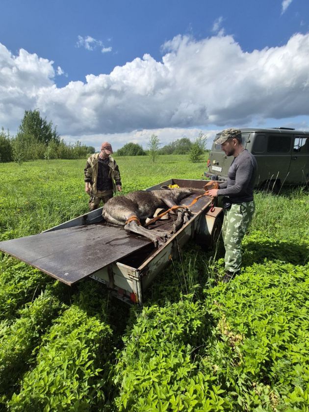 Инспекторы охотнадзора и сотрудники охотхозяйства помогли парнокопытному в Волховском районе Ленобласти. Спящее животное увезли поближе к лесу на прицепе и со связанными ногами.