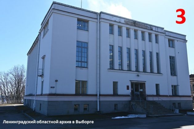 Предлагается пять вариантов в Выборге: библиотека Алвара Аалто; Рыцарский дом; Ленинградский областной архив; библиотека на улице Пионерской, 4 (располагается в старинном здании, построенном в стиле раннего флорентийского неоренессанса в 1900 году европейским архитектором - ред.); Дом-музей Ленина.