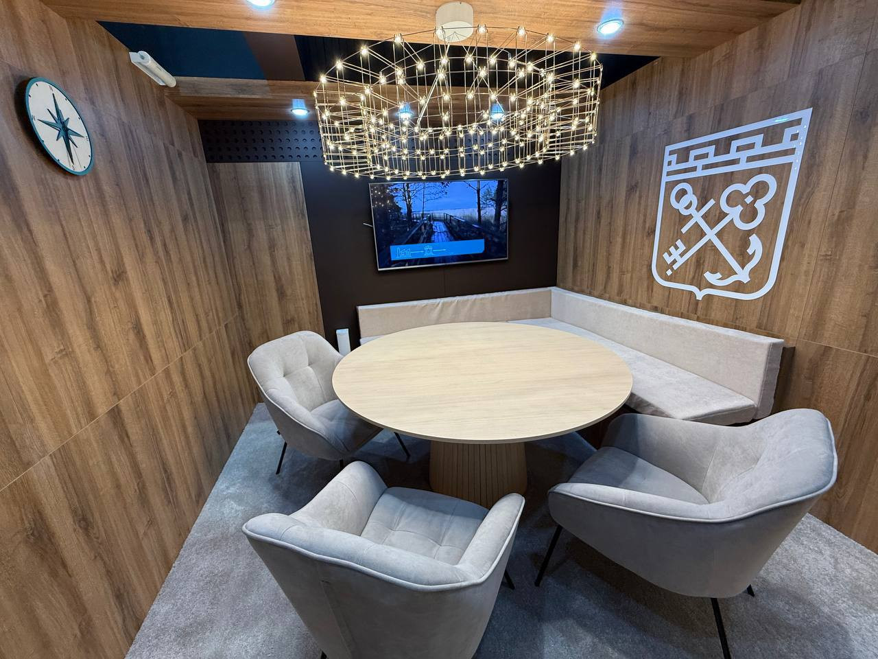 На три дня главным домом чиновников Ленобласти станет макет торгового судна. Наверняка, на этом стенде будет звучать много флотских прибауток и не обойдётся без морского пижонства. Атмосферу обещают добродушную, всё-таки "матрос ребёнка не обидит".
