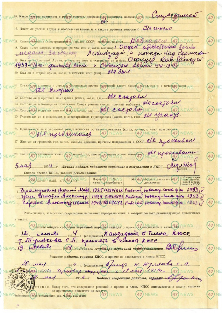 Кандидат в члены КПСС обязан был заполнить и стандартную анкету. 47news ознакомился и с этой бюрократией. Зато документ показывает, как в Союзе мог работать социальный лифт.