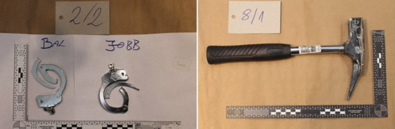 После этого в дело пошли молотки. Фотографии этих инструментов, как и наручников, и разбитых витрин позже на своём сайте опубликует венгерская полиция. Длина рукоятки стандартная, как у нас, — 320 мм.