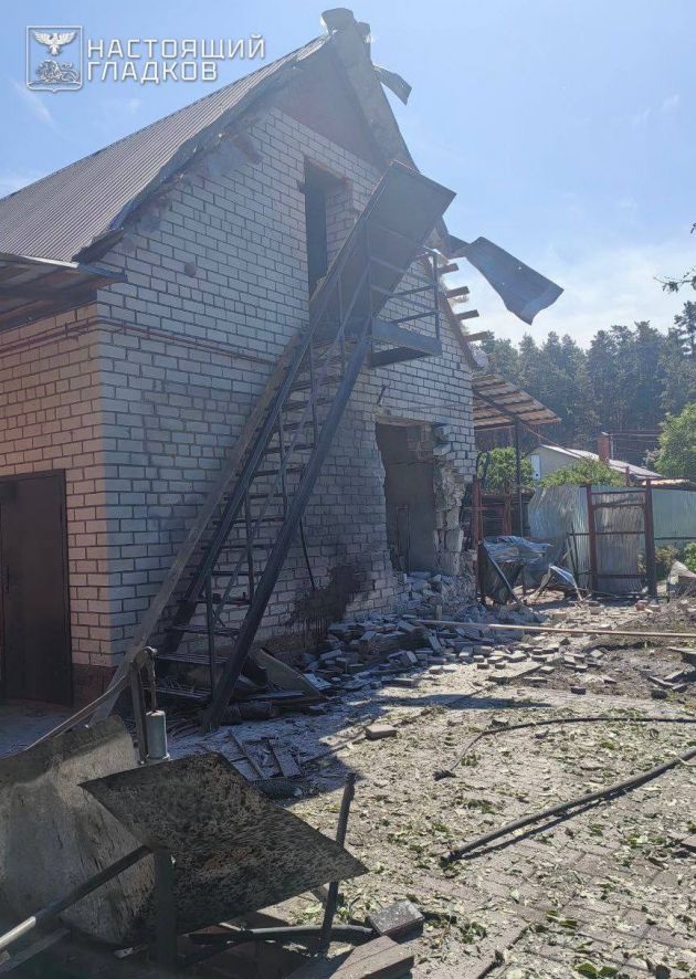 По данным Гладкова, снаряд прилетел в частный жилой дом. В нем выбиты окна, повреждены кровля и фасад, перебита газовая труба. Кроме того, разрушена стена надворной постройки. Поврежден и припаркованный рядом с домом автомобиль.