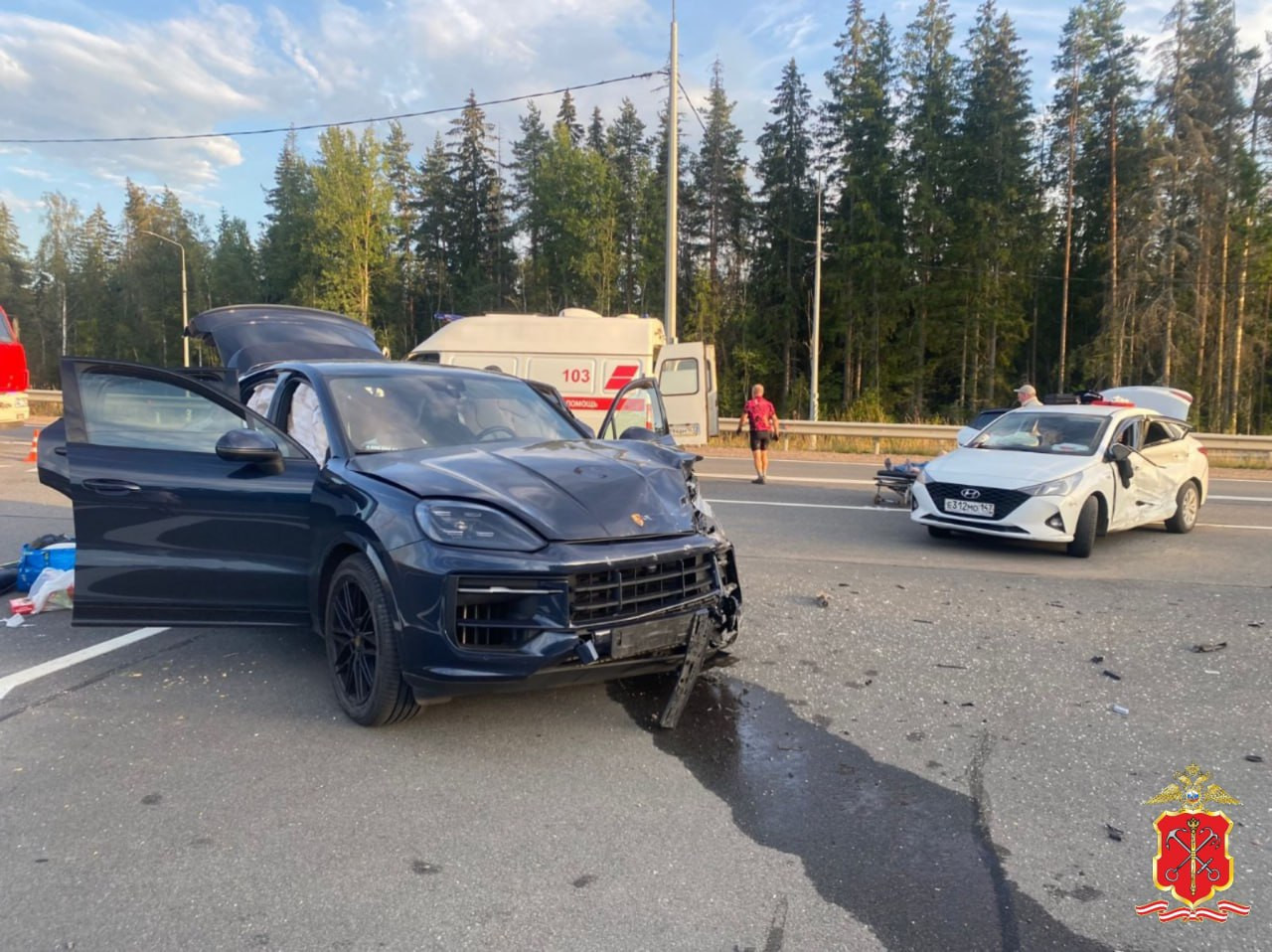 По предварительным данным 47news, около половины седьмого вечера 15 августа 85-м километре дороги "Голубые Озера - Победа - Поляны - трасса "Скандинавия" 42-летний водитель Hyundai Solaris на перекрестке не уступил дорогу Porsche Cayenne под управлением 37-летнего мужчины.