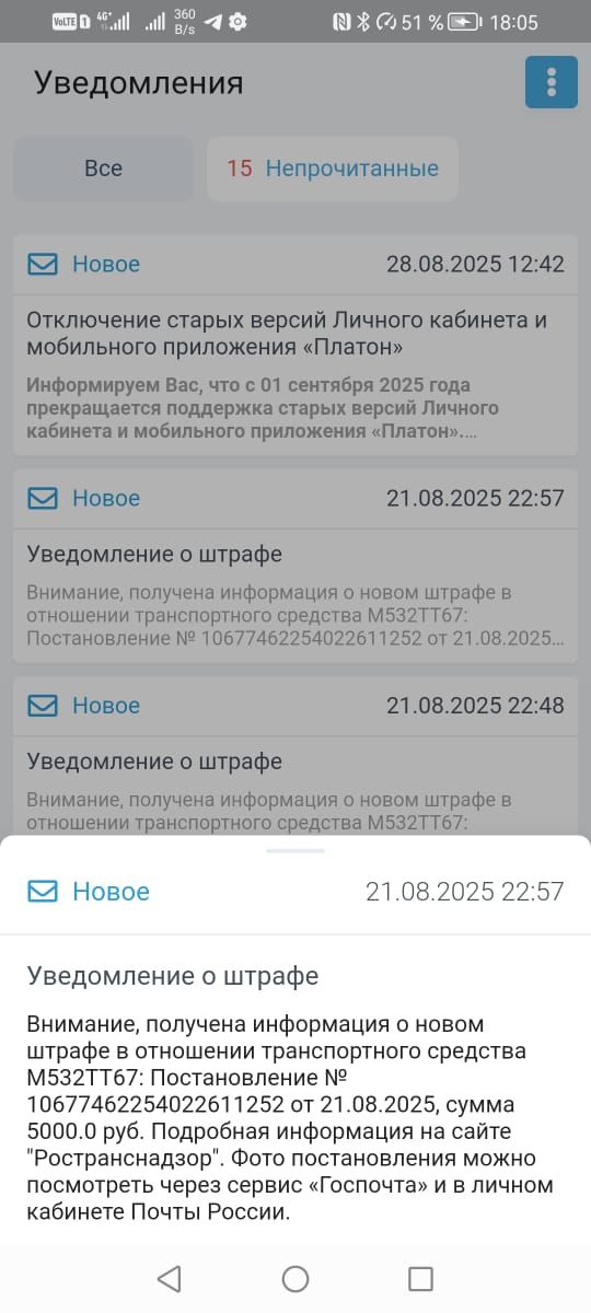 Чем чаще в Ленобласть долетают беспилотники, тем накладнее становится перемещение грузовиков по федеральным трассам с точки зрения финансов. Водитель лесовоза Дмитрий рассказал 47news, что с начала августа поймал минимум семь штрафов. Каждым протоколом по 5000 рублей назначено за отсутствие оплаты давления тяжелых колес и груза на асфальт. Деньги автоматически списывает электроника федеральной системы "Платон".