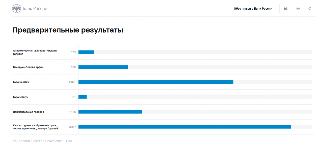 На официальном сайте Центрального Банка России 1 октября открыто онлайн-голосование за новый дизайн банкнот номиналом 500 рублей. Обновленные купюры будут посвящены Северо-Кавказскому федеральному округу и, в частности, городу Пятигорску.