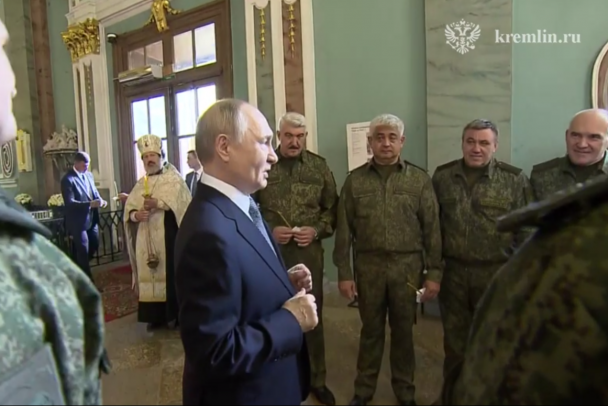 "В течение дня, так же в Санкт-Петербурге, президент провел совещание, в ходе которого начальник Генерального штаба Герасимов, а также командующие группировками войск доложили Верховному главнокомандующему в деталях об оперативной обстановке на фронтах", - сообщил Песков.