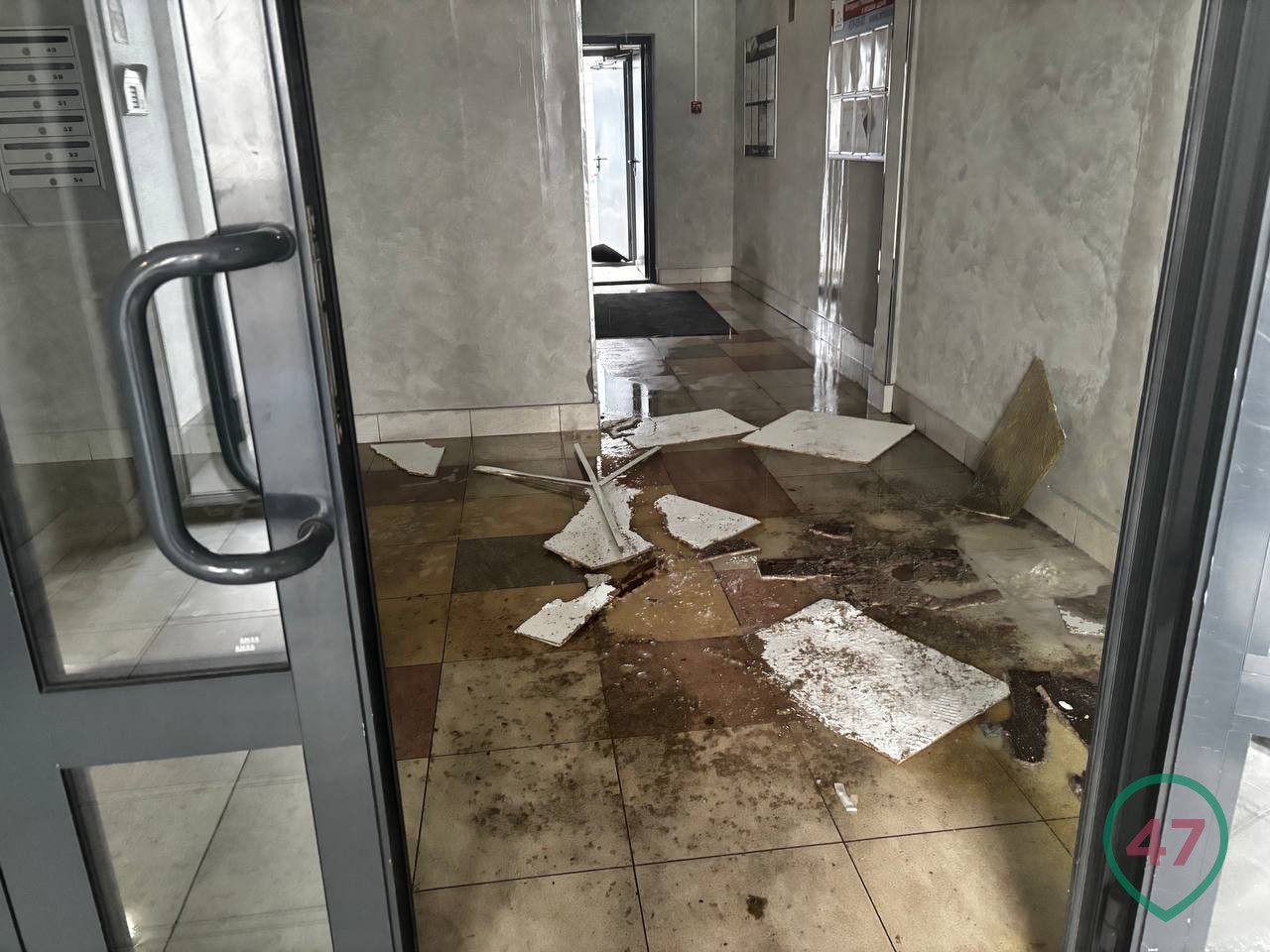 Как передает корреспондент 47news, около полудня 8 октября у жилого комплекса "Царская столица" на улице Кременчугской в центре Петербурга - скопление машин экстренных служб: пожарные, силовики, прибыла бригада скорой помощи. На фасаде здания заметны следы недавнего пожара - гарь и копоть на уровне второго-третьего этажей. В подъезде, залитом водой, лежат фрагменты подвесного потолка.