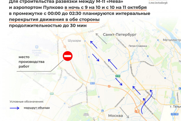 Строительные работы ограничат движение на М-11 "Нева" ночью 11 и 12 октября. Транспорт будут останавливать не более чем на полчаса.