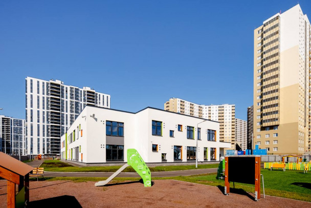 Новый светло-салатовый детский сад скоро откроет двери во Всеволожском районе Ленобласти.