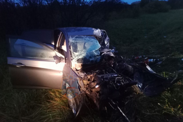 Мужчина за рулем легкового автомобиля погиб. Спасатели деблокировали его из авто.