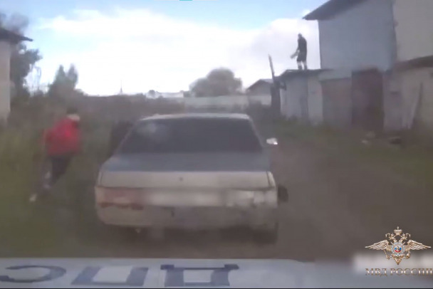 Поразительно меткий бросок прервал погоню за лихачом в Вологодской области. Помог гаишникам владелец гаража, оказавшись на крыше.