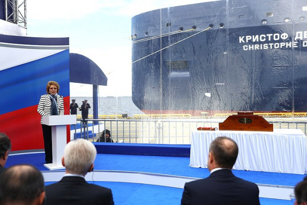 "Нарекаю это судно именем "Кристоф де Маржери". Желаю ему, его экипажу, всем морякам успеха, семь футов под килем", — цитировал Валентину Матвиенко официальный сайт Совета Федерации.