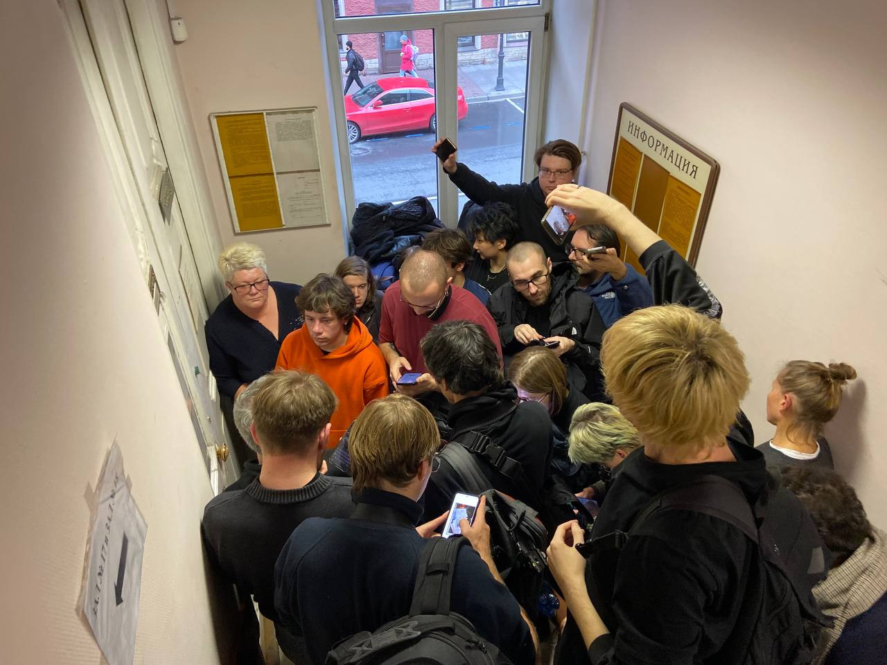 ⁃ С друзьями приехали из Москвы специально послушать Наоко, теперь хотим поддержать в суде. Получается, сорвали выступление, не могли буквально пару дней подождать! - в коридоре я встретил молодого кудрявого гостя северной столицы в толстенных очках, горчичном свитере и синем пальто. - В последнее время очень часто хожу по судам, слушаю разных участников. Однажды случилась такая, знаете, ачивка (достижение - ред.): в суде в Москве наорали и на меня, и на пристава, на секретаря и обвиняемого! У вас в суде очень презентабельно, двери вот какие красивые...