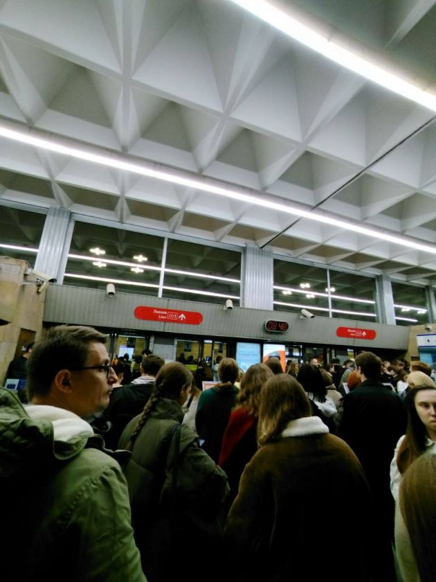 В соцсетях очевидцы показывали скопление людей у станции "Девяткино". Говорили, что "образовалась огромная толпа вокруг".