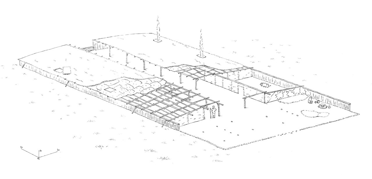 Поселение было окружено частоколом и могло вмещать несколько десятков человек. По мнению специалистов, подобные крупные постройки свидетельствуют о сложной социальной организации общества того времени.