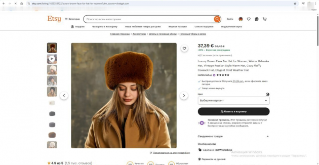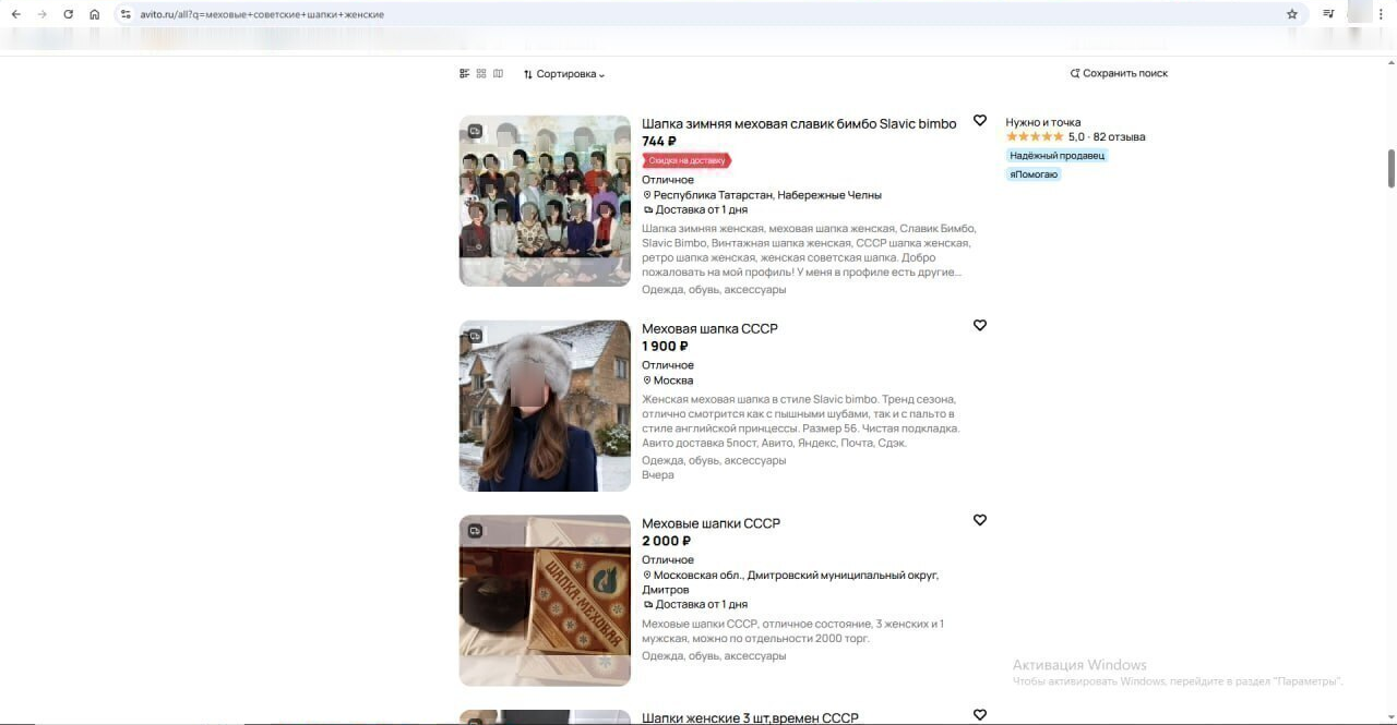 Энтузиасты тем временем выставляют меховые шапки на сайтах онлайн-объявлений. Среди них – как и русские, так и зарубежные платформы. Например, Etsy. Если у нас можно выкупить себе подержанную винтажную шапку за 500-1500 рублей, то американцы и европейцы предлагают заплатить за них около 40 евро. Кто-то готов продать и за все шестьдесят. Видимо, есть свои ценители.