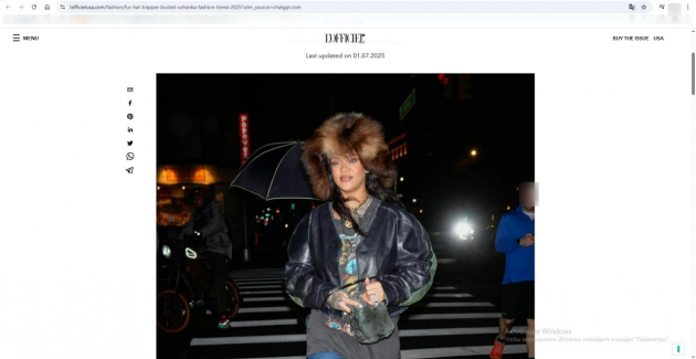 "Меховые шапки oversize можно увидеть на подиумах и улицах Нью-Йорка и Парижа. Даже американская поп-звезда Рианна появлялась в таком образе", – рассказала 47news стилист Мария Фридман.