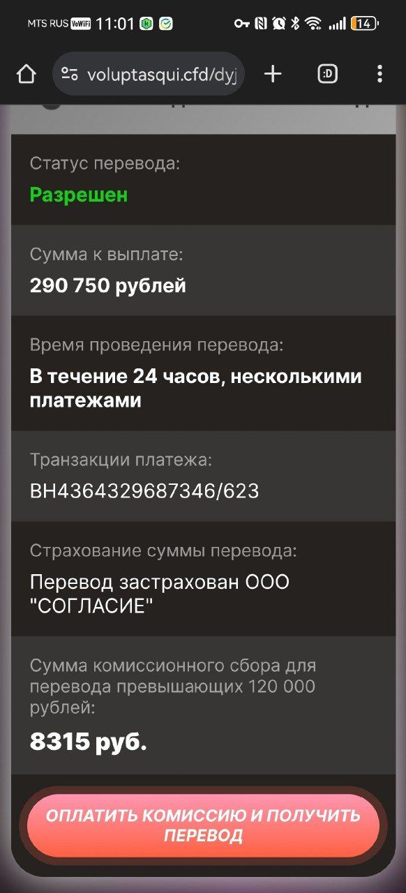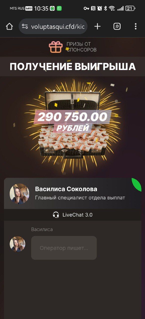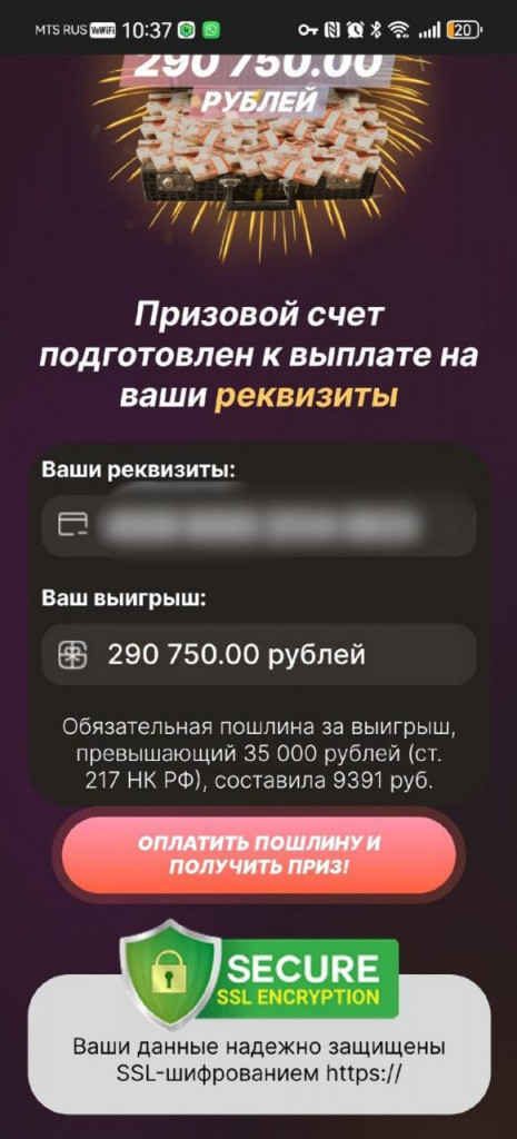 "После долгого перерыва зашла в эту соцсеть и наткнулась на сторис Бородиной. По тексту было непонятно, о чем идет речь, говорилось, что нужно перейти по ссылке. Заинтересовалась, подумала, вдруг там какая-то информация по психологии, у нее есть проект на эту тему. В итоге открылся интерактив с прокруткой колеса, высветилось, что я выиграла 290 тысяч рублей. Подумала: "Серьезно? Неужели правда я выиграла?". Нужно было ввести данные карты и оплатить комиссию. Я давно подписана на Бородину, поэтому поверила и дважды сделала перевод, третий перевод заблокировал банк, тогда возникли подозрения", – вспоминает собеседница.
