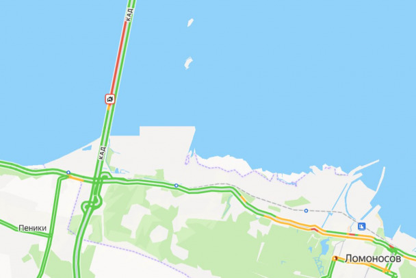 Затор образовался на внешнем кольце КАД у Ломоносова из-за аварии. По предварительной информации, пострадал один человек.