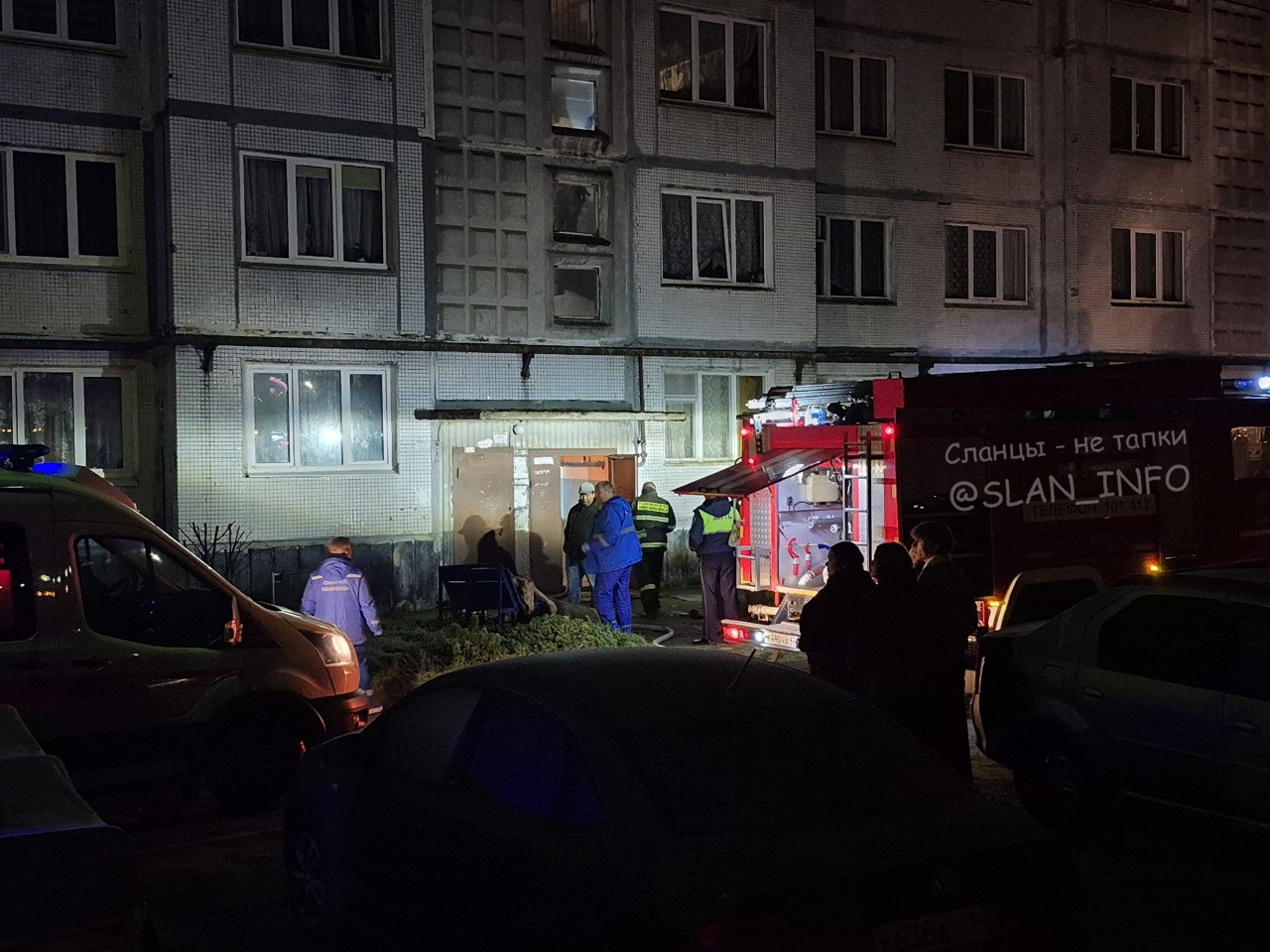 Пожарные тушили квартиру в панельной пятиэтажке в Сланцевском районе Ленинградской области. Среди эвакуированных - двое детей.